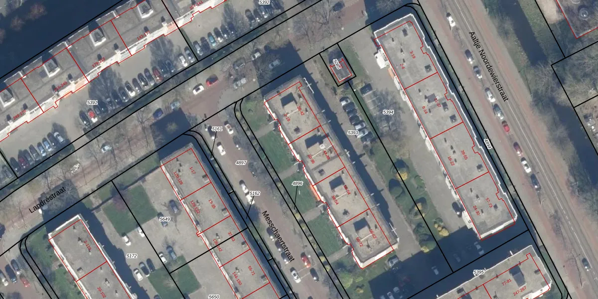 Het perceel waarop Messchaertstraat 22 staat heeft een oppervlakte van 2990 m². Dit is een zeer groot perceel. De perceeloppervlakte wordt geregistreerd door het Kadaster. Gedetailleerde informatie over de maten van dit perceel kunt u vinden in het rapport Kadastrale kaart met maatvoering van Messchaertstraat 22.