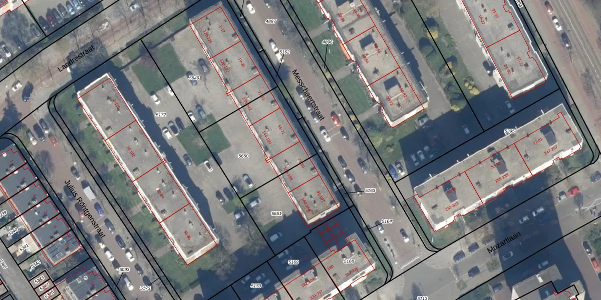 Messchaertstraat 77 is gelegen op kadastraal perceel LDN03H5650. Deze kadastrale aanduiding is uniek en wordt gebruikt door het Kadaster om eigendomsrechten en andere zakelijke rechten vast te leggen. Het perceel maakt onderdeel uit van de kadastrale gemeente Loosduinen.