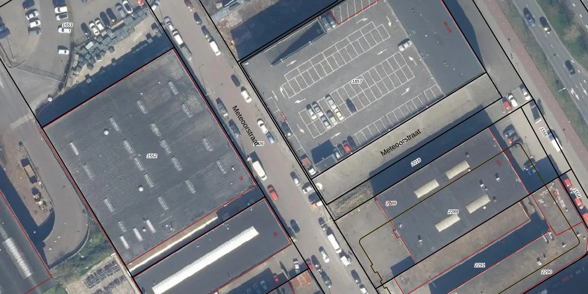 Het perceel waarop Meteoorstraat 76 staat heeft een oppervlakte van 3237 m². Dit is een zeer groot perceel. De perceeloppervlakte wordt geregistreerd door het Kadaster. Gedetailleerde informatie over de maten van dit perceel kunt u vinden in het rapport Kadastrale kaart met maatvoering van Meteoorstraat 76.