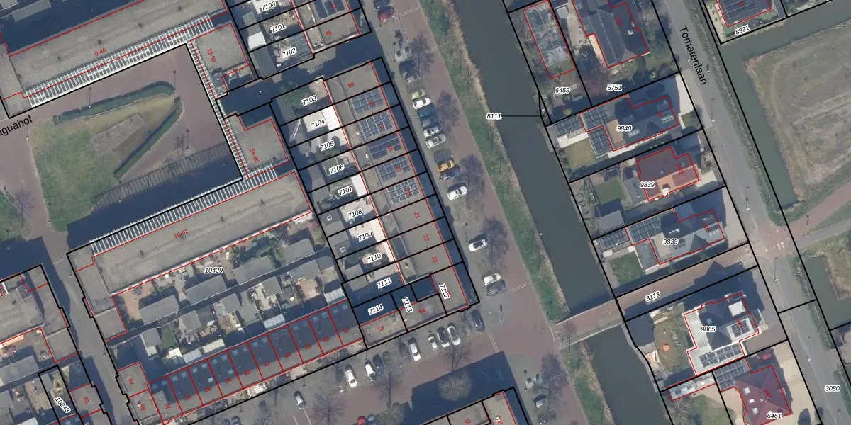Gebruik de zoekbalk of klik op een perceel voor informatie over de adressen binnen dit perceel.