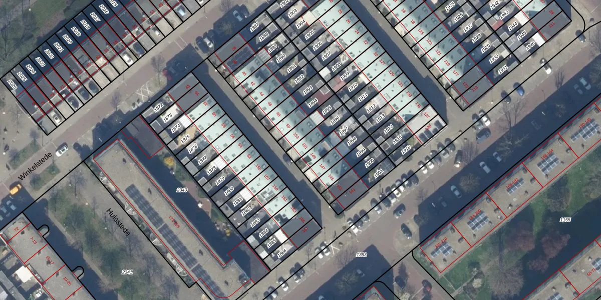 Gebruik de zoekbalk of klik op een perceel voor informatie over de adressen binnen dit perceel.