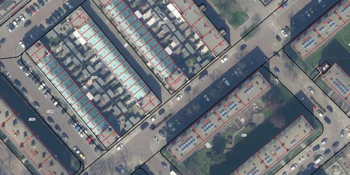 Middenstede 233 is gelegen op kadastraal perceel GVH37AW2339. Deze kadastrale aanduiding is uniek en wordt gebruikt door het Kadaster om eigendomsrechten en andere zakelijke rechten vast te leggen. Het perceel maakt onderdeel uit van de kadastrale gemeente 's-Gravenhage.