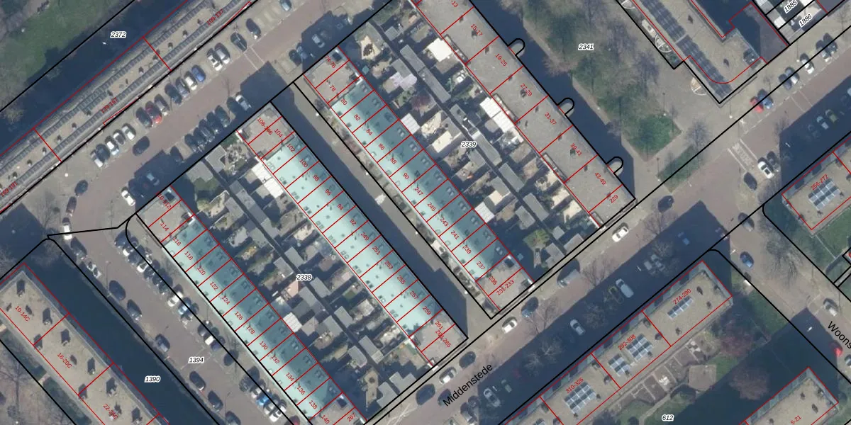 Middenstede 245 is gelegen op kadastraal perceel GVH37AW2339. Deze kadastrale aanduiding is uniek en wordt gebruikt door het Kadaster om eigendomsrechten en andere zakelijke rechten vast te leggen. Het perceel maakt onderdeel uit van de kadastrale gemeente 's-Gravenhage.