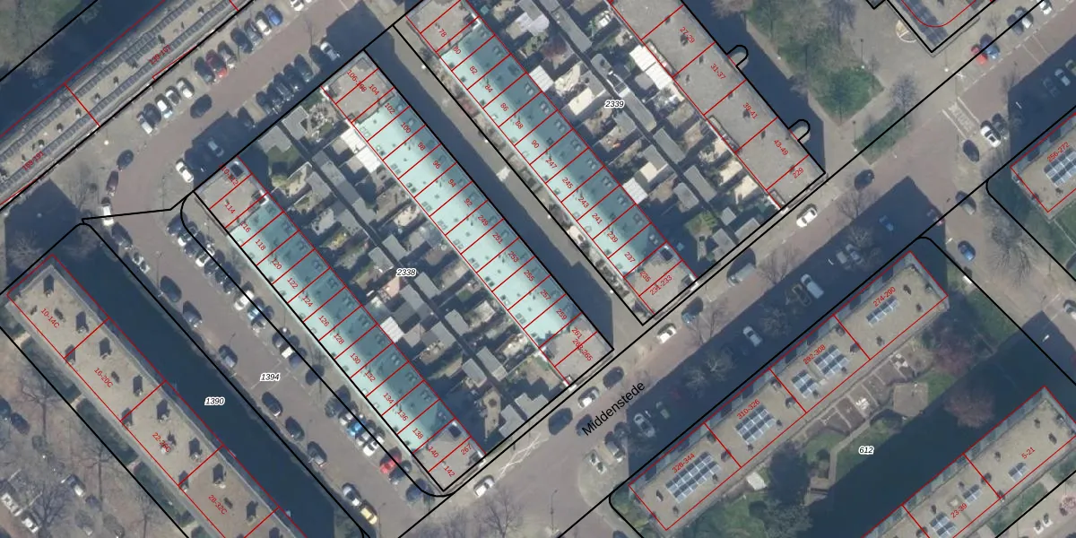 Middenstede 255 is gelegen op kadastraal perceel GVH37AW2338. Deze kadastrale aanduiding is uniek en wordt gebruikt door het Kadaster om eigendomsrechten en andere zakelijke rechten vast te leggen. Het perceel maakt onderdeel uit van de kadastrale gemeente 's-Gravenhage.