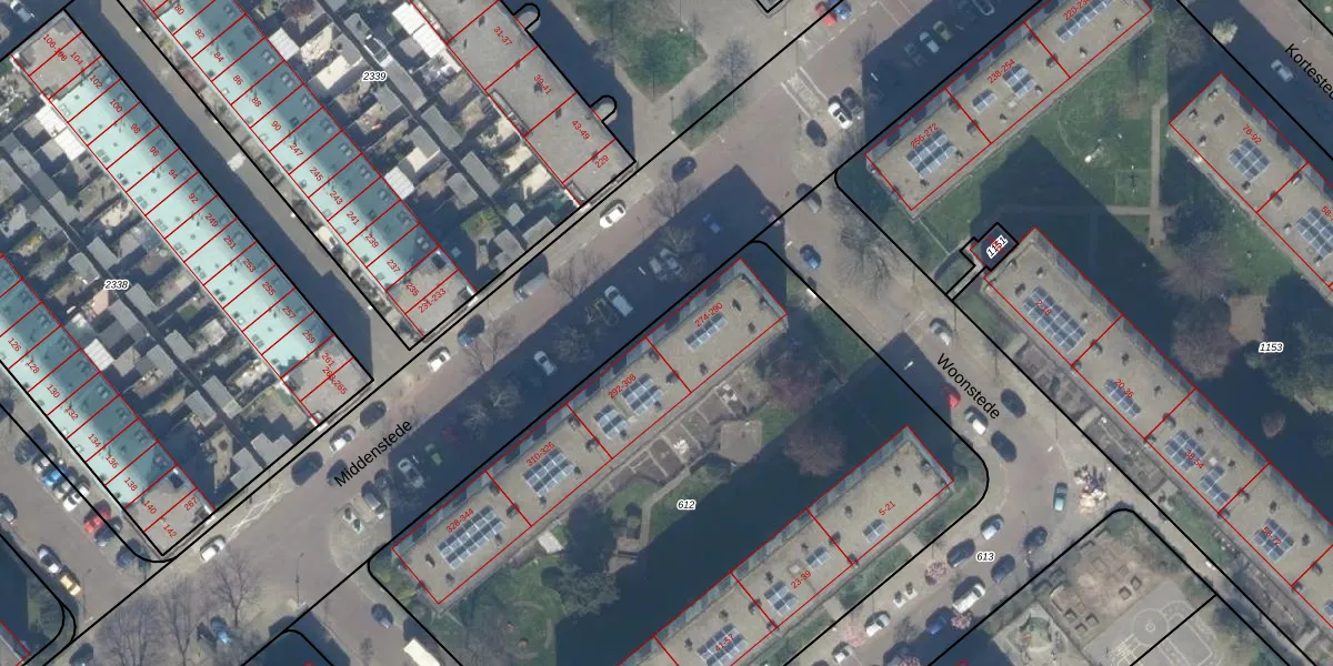 Middenstede 288 is gelegen op kadastraal perceel GVH37AW612. Deze kadastrale aanduiding is uniek en wordt gebruikt door het Kadaster om eigendomsrechten en andere zakelijke rechten vast te leggen. Het perceel maakt onderdeel uit van de kadastrale gemeente 's-Gravenhage.