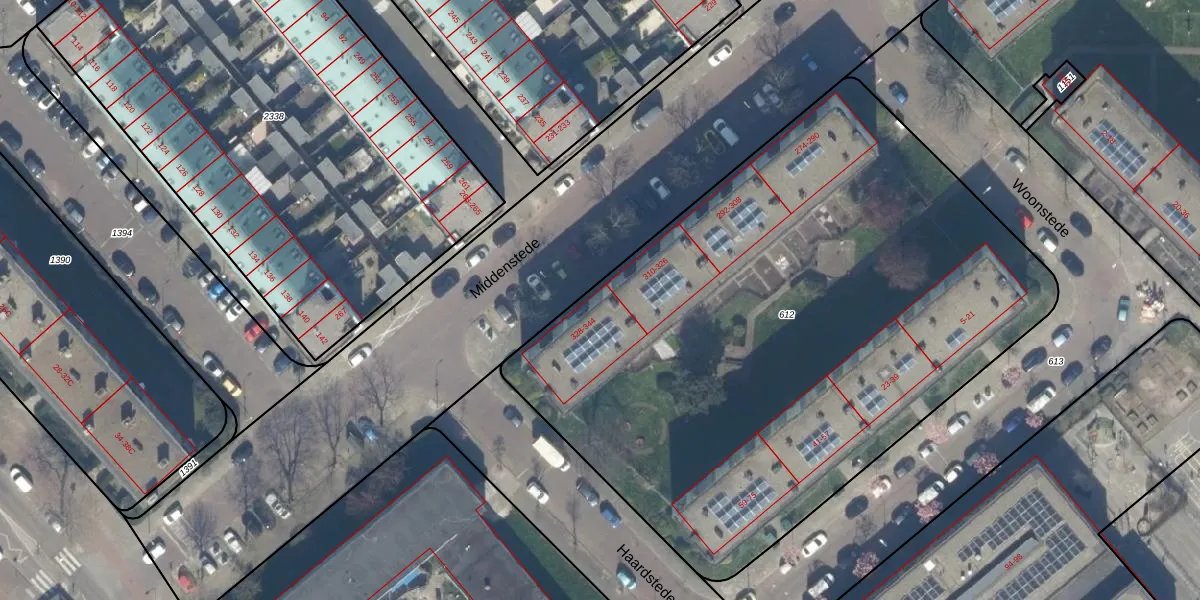Middenstede 332 is gelegen op kadastraal perceel GVH37AW612. Deze kadastrale aanduiding is uniek en wordt gebruikt door het Kadaster om eigendomsrechten en andere zakelijke rechten vast te leggen. Het perceel maakt onderdeel uit van de kadastrale gemeente 's-Gravenhage.