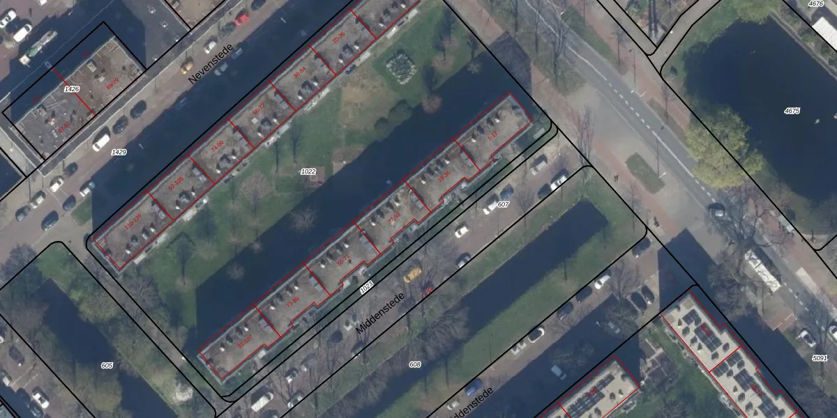 Middenstede 37 is gelegen op kadastraal perceel GVH37AW1022. Deze kadastrale aanduiding is uniek en wordt gebruikt door het Kadaster om eigendomsrechten en andere zakelijke rechten vast te leggen. Het perceel maakt onderdeel uit van de kadastrale gemeente 's-Gravenhage.