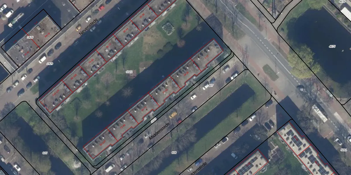 Middenstede 43 is gelegen op kadastraal perceel GVH37AW1022. Deze kadastrale aanduiding is uniek en wordt gebruikt door het Kadaster om eigendomsrechten en andere zakelijke rechten vast te leggen. Het perceel maakt onderdeel uit van de kadastrale gemeente 's-Gravenhage.