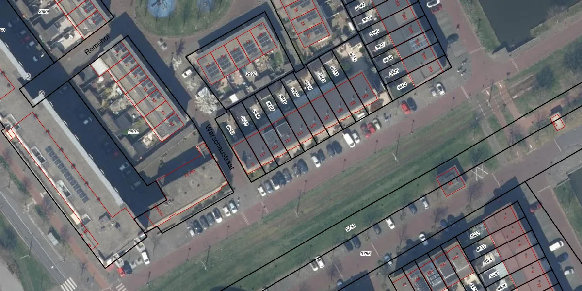 Gebruik de zoekbalk of klik op een perceel voor informatie over de adressen binnen dit perceel.