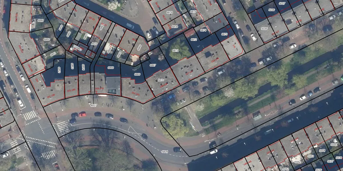 Het perceel waarop het adres ligt is GVH29-AM-6870. De afkorting 'GVH29' staat voor kadastrale gemeente 's-Gravenhage. Het perceel is met 378 m² relatief groot. Het gemiddelde ligt in de kadastrale gemeente 's-Gravenhage op 303,34 m². De grootste perceeloppervlakte in de kadastrale gemeente is 3,0 ha. De kleinste oppervlakte bedraagt 0 m². Op het perceel liggen in totaal 6 adressen. De laatste wijziging in het de Basisregistratie Kadaster (BRK) was op 23-05-2003.