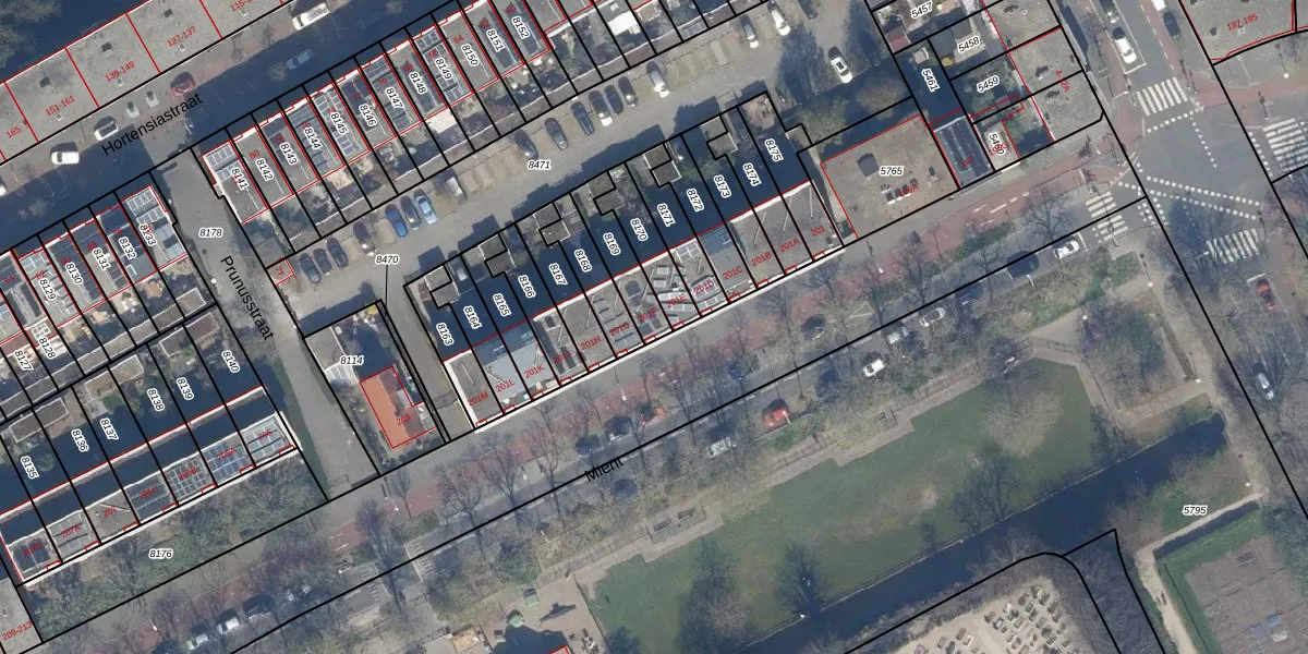 Gebruik de zoekbalk of klik op een perceel voor informatie over de adressen binnen dit perceel.