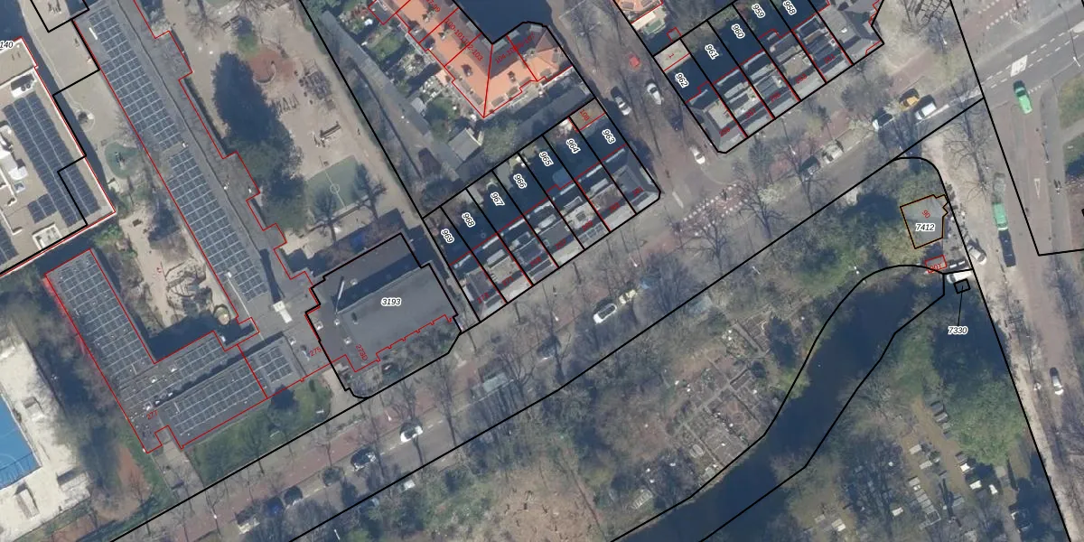 Gebruik de zoekbalk of klik op een perceel voor informatie over de adressen binnen dit perceel.