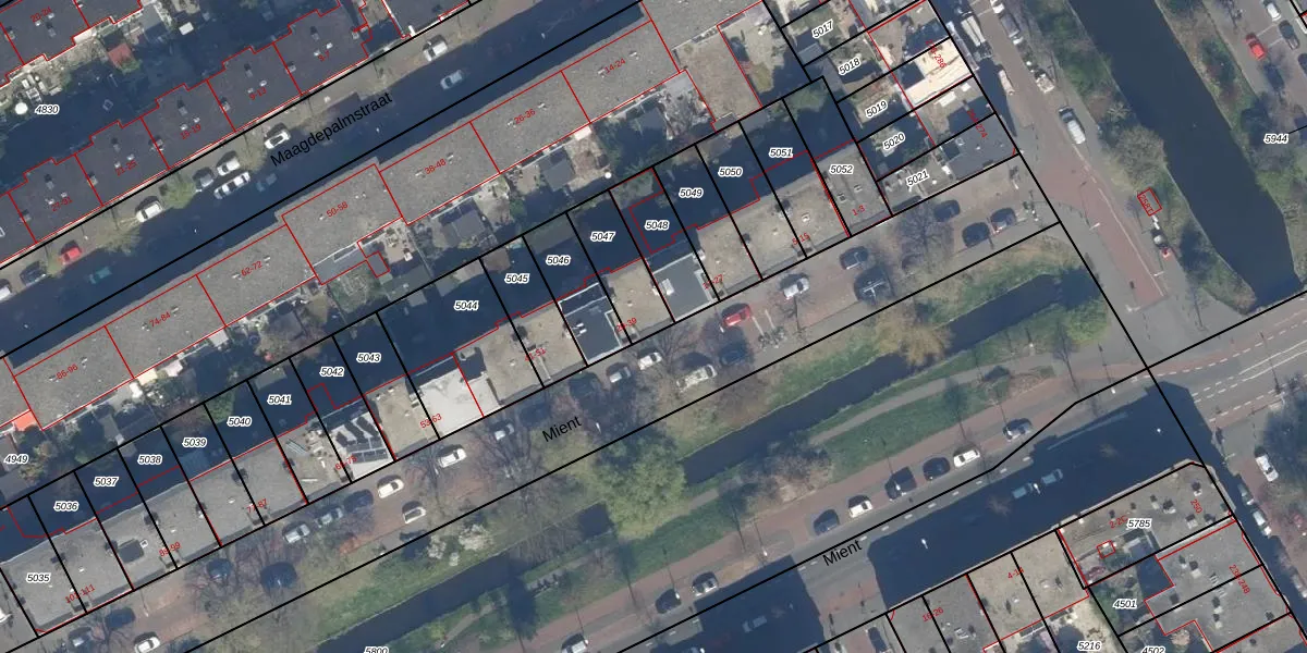 Het perceel waarop Mient 33 staat heeft een oppervlakte van 170 m². Dit is een middelgroot perceel. De perceeloppervlakte wordt geregistreerd door het Kadaster. Gedetailleerde informatie over de maten van dit perceel kunt u vinden in het rapport Kadastrale kaart met maatvoering van Mient 33.