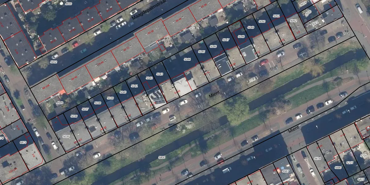 Mient 53 is gelegen op kadastraal perceel GVH29AM5044. Deze kadastrale aanduiding is uniek en wordt gebruikt door het Kadaster om eigendomsrechten en andere zakelijke rechten vast te leggen. Het perceel maakt onderdeel uit van de kadastrale gemeente 's-Gravenhage.