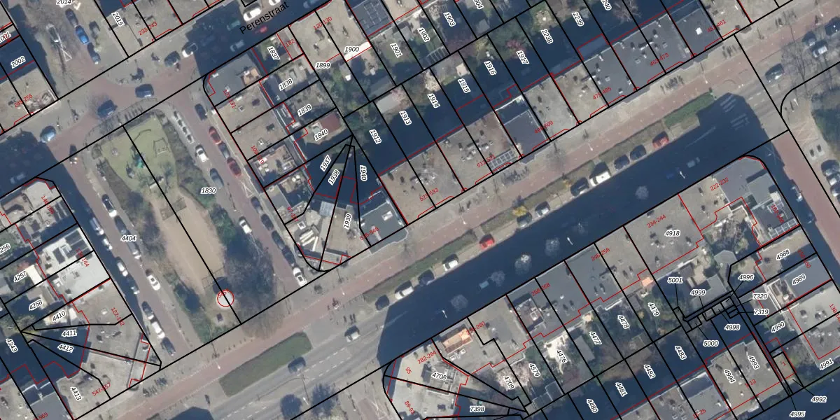 Het perceel waarop het adres ligt is GVH36-AV-1912. De afkorting 'GVH36' staat voor kadastrale gemeente 's-Gravenhage. Het perceel is kleiner dan gemiddeld in 's-Gravenhage. Het perceel is 242 m² groot, terwijl het gemiddelde ligt op 362,09 m². Het kleinste perceel in de kadastrale gemeente is 2 m² groot. De grootste perceeloppervlakte is 8,1 ha. Op het perceel zijn 3 adressen aanwezig. De huidige grenzen van het perceel zijn digitaal in de Basisregistratie Kadaster (BRK) geregistreerd op 22-05-2003.