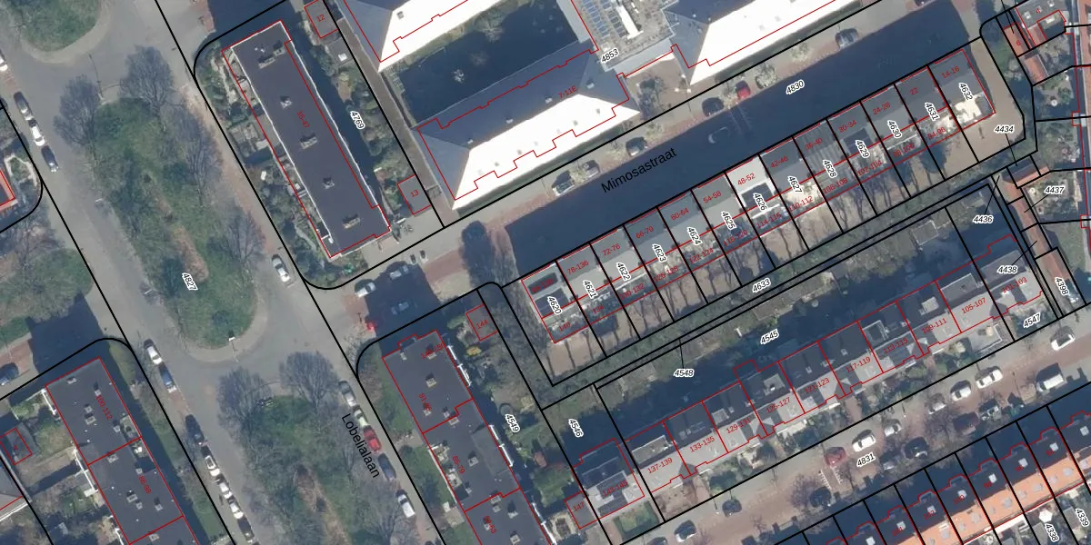 Mimosastraat 84 is gelegen op kadastraal perceel LDN03H4620. Deze kadastrale aanduiding is uniek en wordt gebruikt door het Kadaster om eigendomsrechten en andere zakelijke rechten vast te leggen. Het perceel maakt onderdeel uit van de kadastrale gemeente Loosduinen.