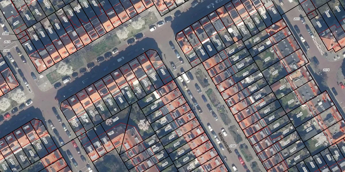 Gebruik de zoekbalk of klik op een perceel voor informatie over de adressen binnen dit perceel.