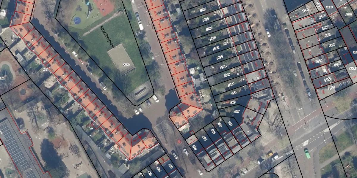 Het perceel waarop Moerbeiplein 10 staat heeft een oppervlakte van 2871 m². Dit is een zeer groot perceel. De perceeloppervlakte wordt geregistreerd door het Kadaster. Gedetailleerde informatie over de maten van dit perceel kunt u vinden in het rapport Kadastrale kaart met maatvoering van Moerbeiplein 10.