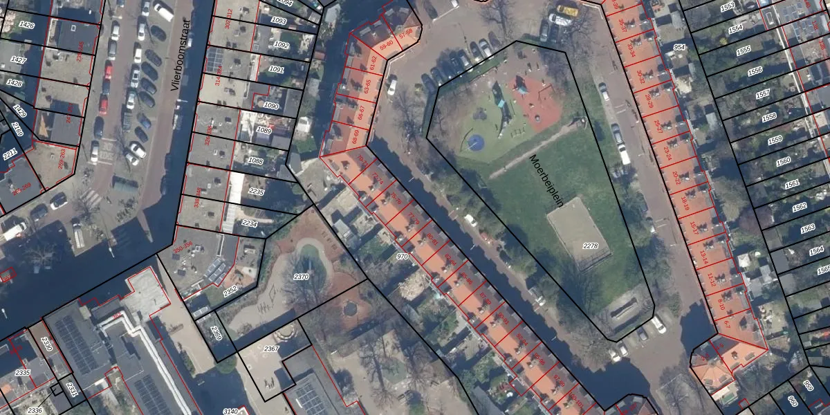 Het perceel waarop Moerbeiplein 77 staat heeft een oppervlakte van 3460 m². Dit is een zeer groot perceel. De perceeloppervlakte wordt geregistreerd door het Kadaster. Gedetailleerde informatie over de maten van dit perceel kunt u vinden in het rapport Kadastrale kaart met maatvoering van Moerbeiplein 77.
