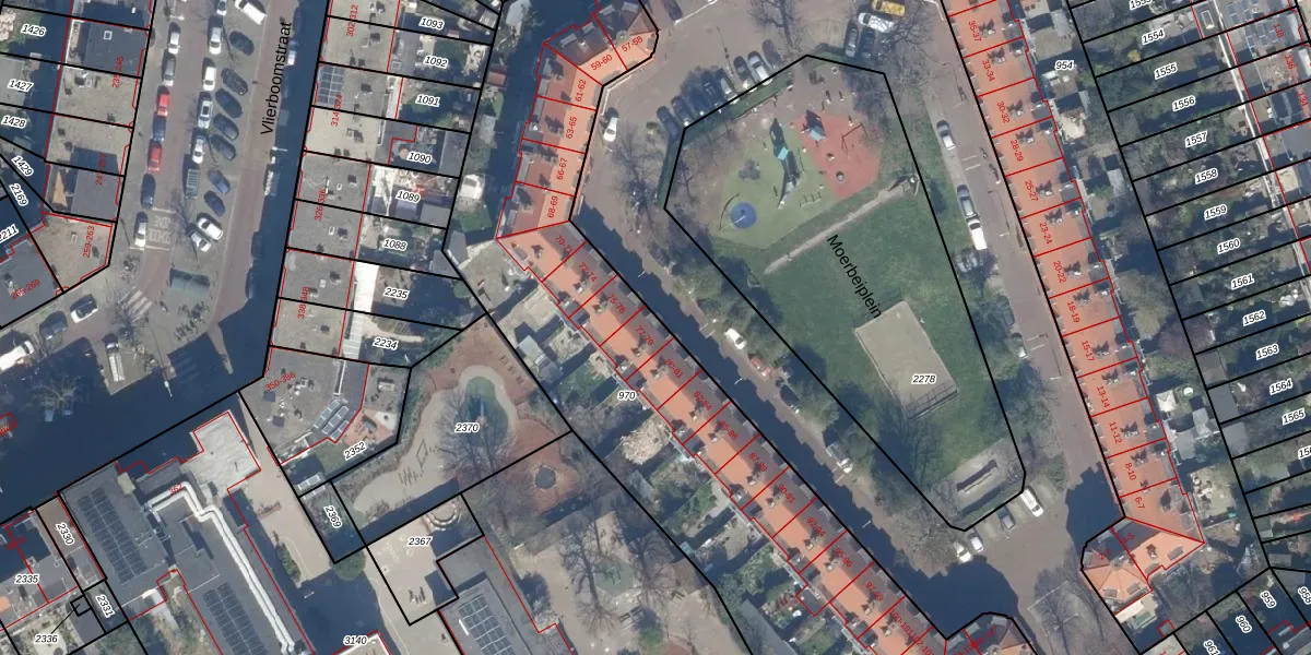 Het perceel waarop Moerbeiplein 78 staat heeft een oppervlakte van 3460 m². Dit is een zeer groot perceel. De perceeloppervlakte wordt geregistreerd door het Kadaster. Gedetailleerde informatie over de maten van dit perceel kunt u vinden in het rapport Kadastrale kaart met maatvoering van Moerbeiplein 78.