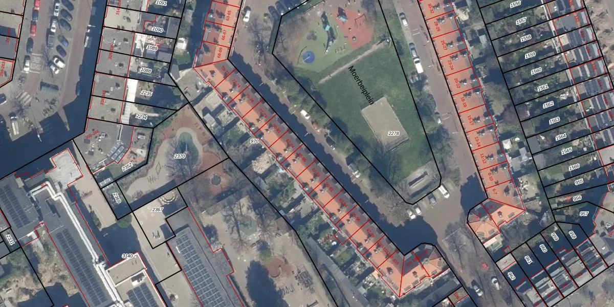 Het perceel waarop Moerbeiplein 85 staat heeft een oppervlakte van 3460 m². Dit is een zeer groot perceel. De perceeloppervlakte wordt geregistreerd door het Kadaster. Gedetailleerde informatie over de maten van dit perceel kunt u vinden in het rapport Kadastrale kaart met maatvoering van Moerbeiplein 85.