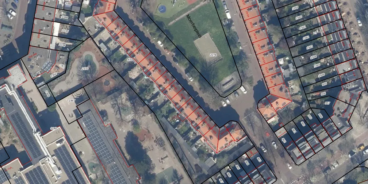 Het perceel waarop Moerbeiplein 92 staat heeft een oppervlakte van 3460 m². Dit is een zeer groot perceel. De perceeloppervlakte wordt geregistreerd door het Kadaster. Gedetailleerde informatie over de maten van dit perceel kunt u vinden in het rapport Kadastrale kaart met maatvoering van Moerbeiplein 92.