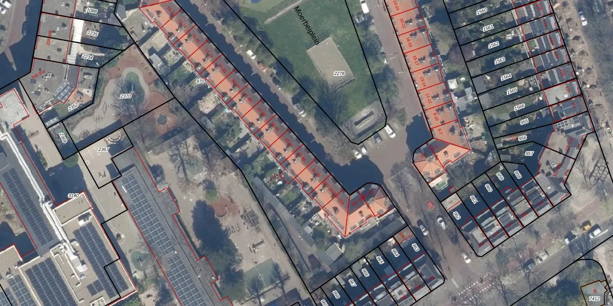 Het perceel waarop Moerbeiplein 96 staat heeft een oppervlakte van 3460 m². Dit is een zeer groot perceel. De perceeloppervlakte wordt geregistreerd door het Kadaster. Gedetailleerde informatie over de maten van dit perceel kunt u vinden in het rapport Kadastrale kaart met maatvoering van Moerbeiplein 96.