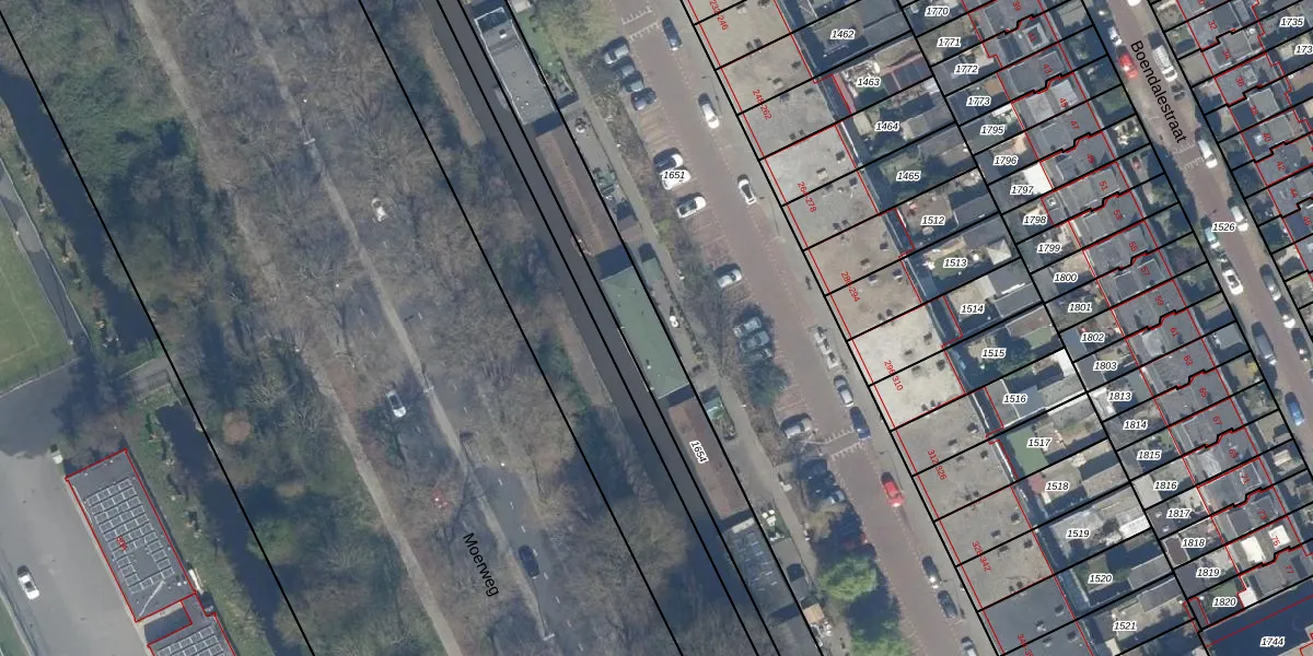 Het perceel waarop Moerweg 30 staat heeft een oppervlakte van 3400 m². Dit is een zeer groot perceel. De perceeloppervlakte wordt geregistreerd door het Kadaster. Gedetailleerde informatie over de maten van dit perceel kunt u vinden in het rapport Kadastrale kaart met maatvoering van Moerweg 30.