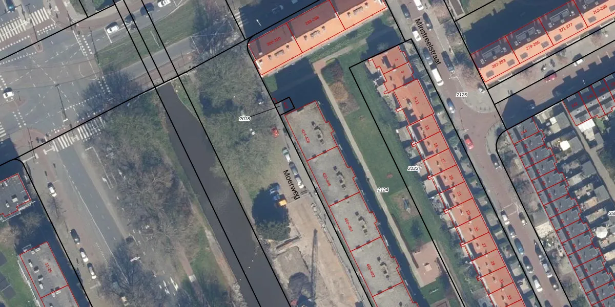 Moerweg 426 is gelegen op kadastraal perceel GVH20AC2124. Deze kadastrale aanduiding is uniek en wordt gebruikt door het Kadaster om eigendomsrechten en andere zakelijke rechten vast te leggen. Het perceel maakt onderdeel uit van de kadastrale gemeente 's-Gravenhage.