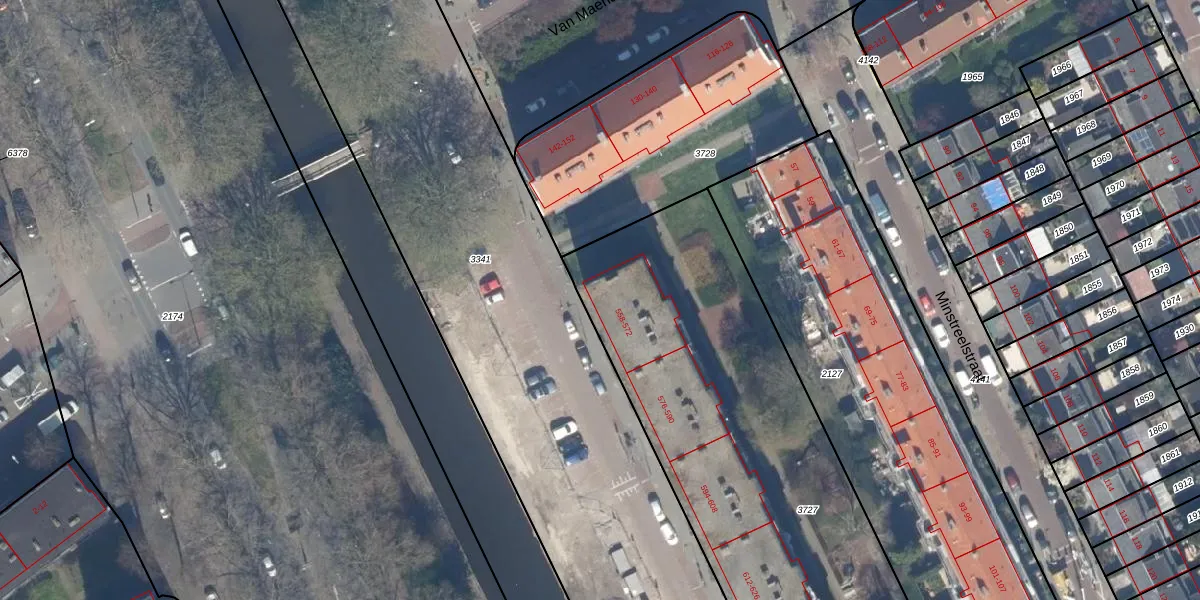 Het perceel waarop het adres ligt is GVH20-AC-3727. De afkorting 'GVH20' staat voor kadastrale gemeente 's-Gravenhage. De oppervlakte van het perceel is 3455 m². Dat is groter dan gemiddeld in 's-Gravenhage, waar de gemiddelde perceeloppervlakte op 881,41 m² ligt. Het kleinste perceel in de kadastrale gemeente is 0 m² groot. De grootste perceeloppervlakte is 5,9 ha. Er zijn 60 adressen aanwezig op het perceel. De laatste wijziging in het de Basisregistratie Kadaster (BRK) was op 03-01-2018.