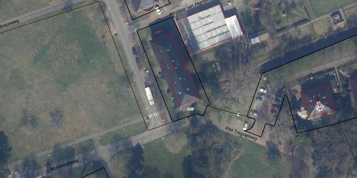 Monsterseweg 81-A is gelegen op kadastraal perceel LDN03K1627. Deze kadastrale aanduiding is uniek en wordt gebruikt door het Kadaster om eigendomsrechten en andere zakelijke rechten vast te leggen. Het perceel maakt onderdeel uit van de kadastrale gemeente Loosduinen.