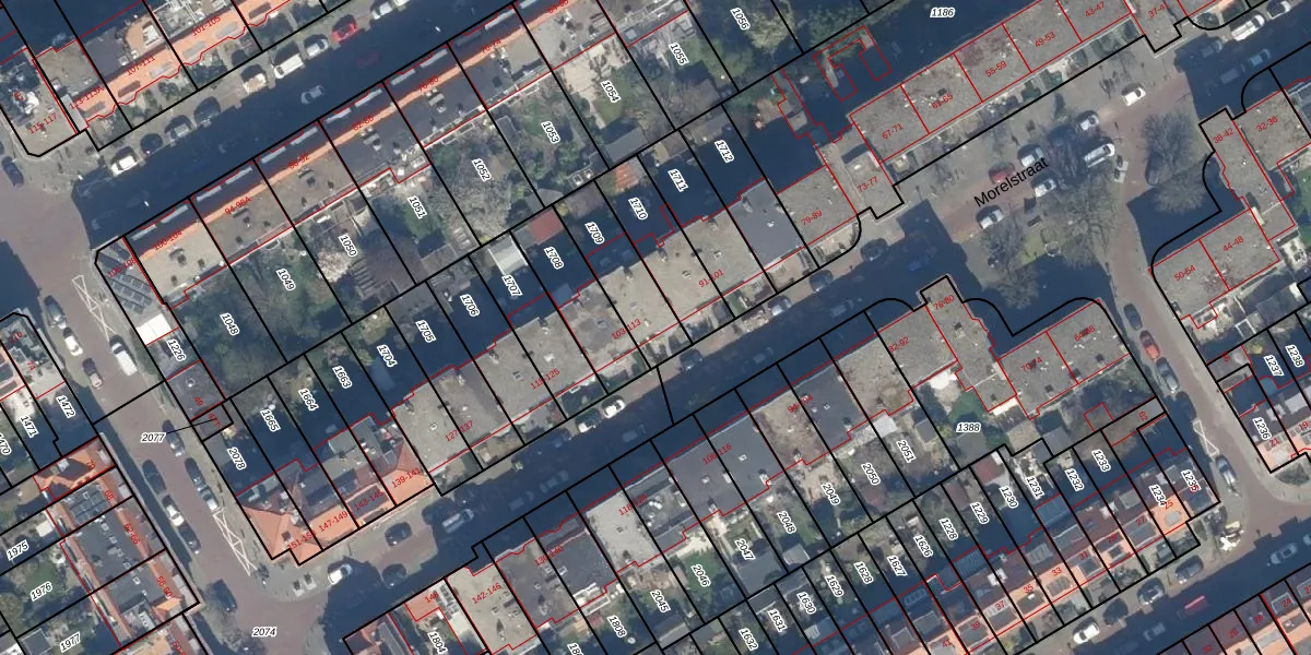 Het perceel waarop Morelstraat 105 staat heeft een oppervlakte van 221 m². Dit is een middelgroot perceel. De perceeloppervlakte wordt geregistreerd door het Kadaster. Gedetailleerde informatie over de maten van dit perceel kunt u vinden in het rapport Kadastrale kaart met maatvoering van Morelstraat 105.