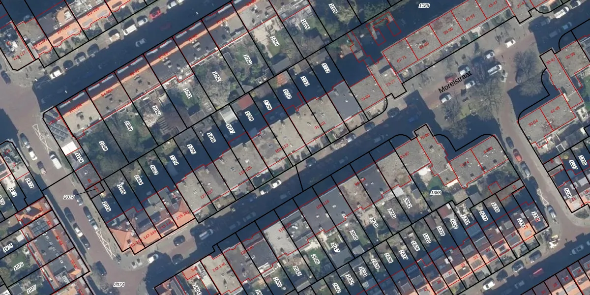 Het perceel waarop Morelstraat 107 staat heeft een oppervlakte van 221 m². Dit is een middelgroot perceel. De perceeloppervlakte wordt geregistreerd door het Kadaster. Gedetailleerde informatie over de maten van dit perceel kunt u vinden in het rapport Kadastrale kaart met maatvoering van Morelstraat 107.