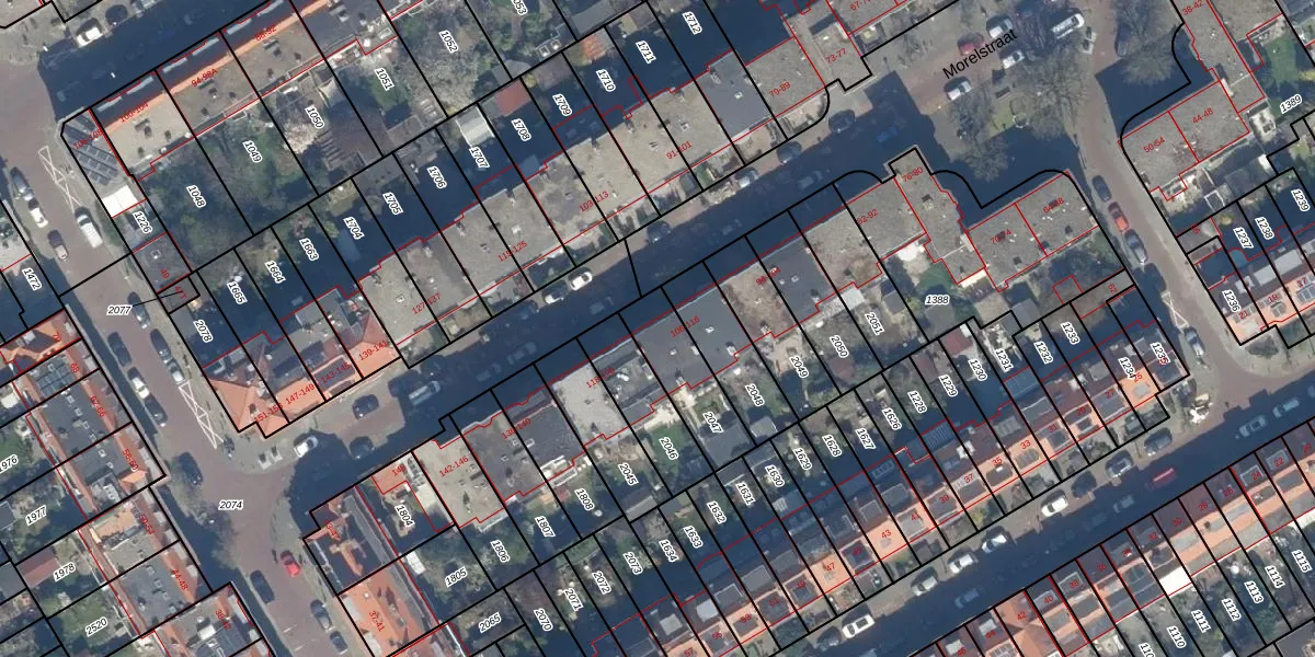 Morelstraat 114 is gelegen op kadastraal perceel GVH36AV2047. Deze kadastrale aanduiding is uniek en wordt gebruikt door het Kadaster om eigendomsrechten en andere zakelijke rechten vast te leggen. Het perceel maakt onderdeel uit van de kadastrale gemeente 's-Gravenhage.