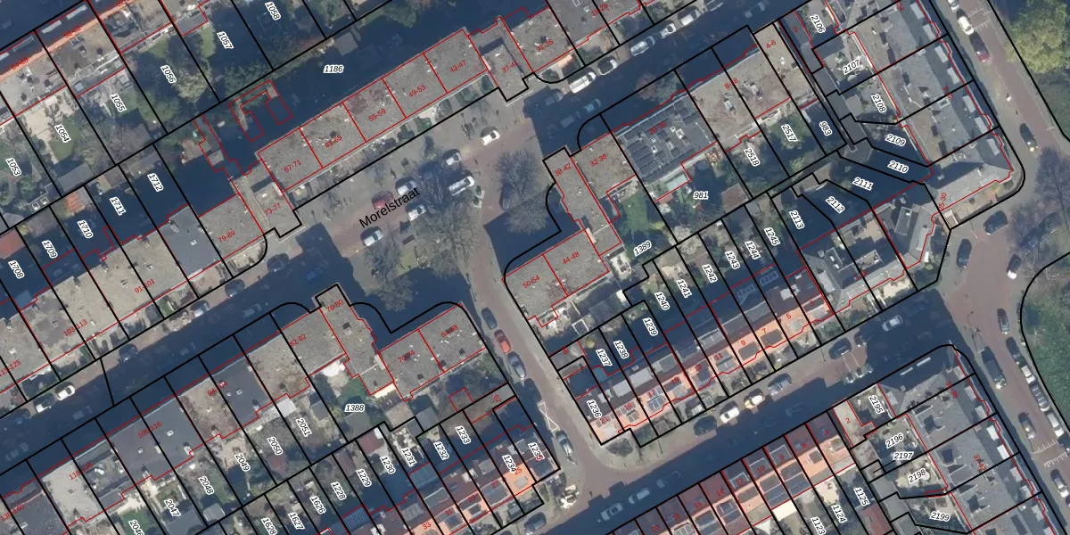 Het perceel waarop Morelstraat 54 staat heeft een oppervlakte van 750 m². Dit is een groot perceel. De perceeloppervlakte wordt geregistreerd door het Kadaster. Gedetailleerde informatie over de maten van dit perceel kunt u vinden in het rapport Kadastrale kaart met maatvoering van Morelstraat 54.
