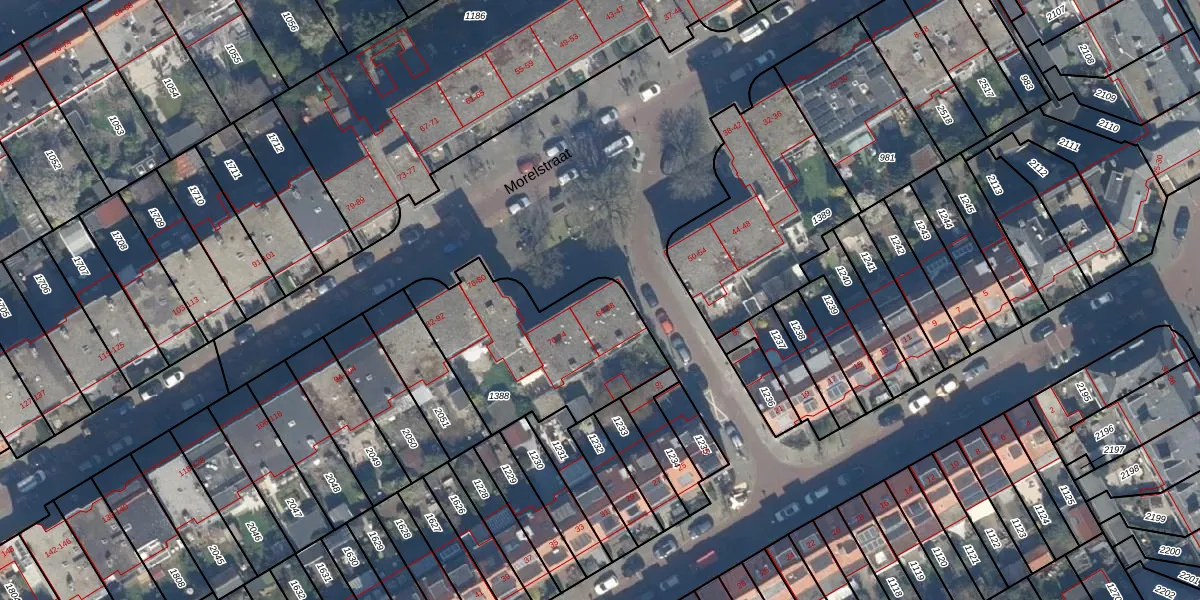 Het perceel waarop Morelstraat 66 staat heeft een oppervlakte van 750 m². Dit is een groot perceel. De perceeloppervlakte wordt geregistreerd door het Kadaster. Gedetailleerde informatie over de maten van dit perceel kunt u vinden in het rapport Kadastrale kaart met maatvoering van Morelstraat 66.