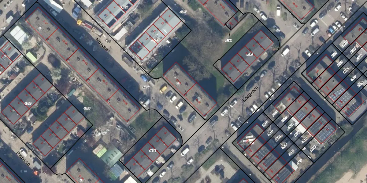 Het perceel waarop Mosveen 36 staat heeft een oppervlakte van 3493 m². Dit is een zeer groot perceel. De perceeloppervlakte wordt geregistreerd door het Kadaster. Gedetailleerde informatie over de maten van dit perceel kunt u vinden in het rapport Kadastrale kaart met maatvoering van Mosveen 36.