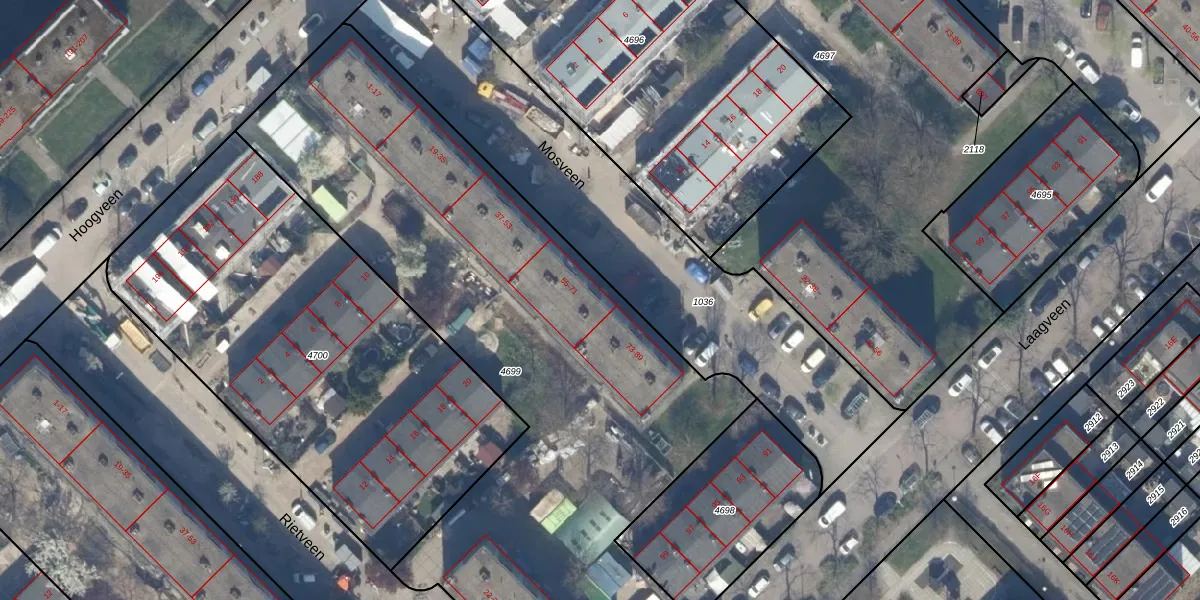 Het perceel waarop Mosveen 65 staat heeft een oppervlakte van 3582 m². Dit is een zeer groot perceel. De perceeloppervlakte wordt geregistreerd door het Kadaster. Gedetailleerde informatie over de maten van dit perceel kunt u vinden in het rapport Kadastrale kaart met maatvoering van Mosveen 65.