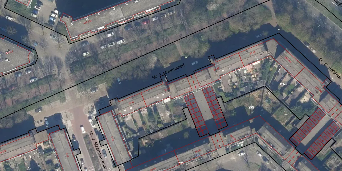 Mr. J. Meermanerf 49 is gelegen op kadastraal perceel LDN03M6174. Deze kadastrale aanduiding is uniek en wordt gebruikt door het Kadaster om eigendomsrechten en andere zakelijke rechten vast te leggen. Het perceel maakt onderdeel uit van de kadastrale gemeente Loosduinen.