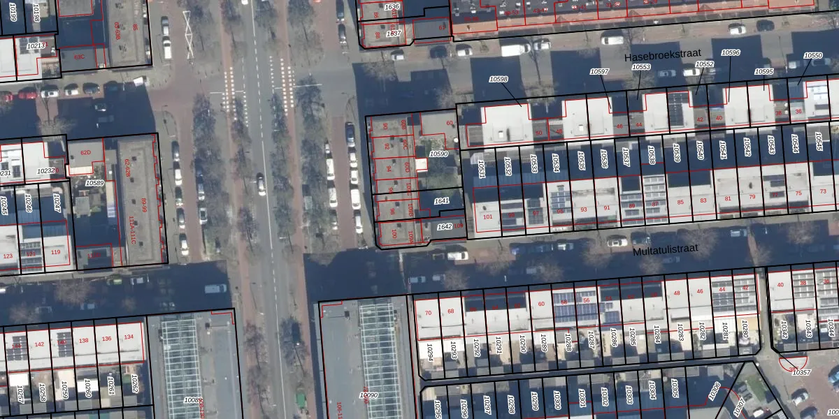 Multatulistraat 109-B is gelegen op kadastraal perceel GVH26AI1641. Deze kadastrale aanduiding is uniek en wordt gebruikt door het Kadaster om eigendomsrechten en andere zakelijke rechten vast te leggen. Het perceel maakt onderdeel uit van de kadastrale gemeente 's-Gravenhage.