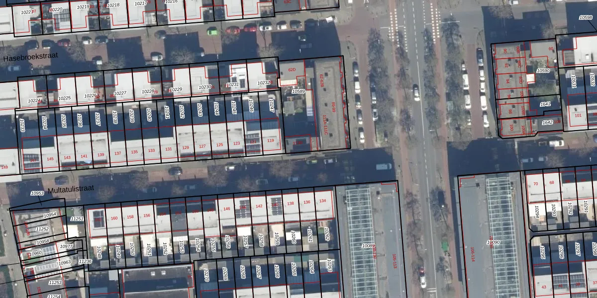 Multatulistraat 111-D is gelegen op kadastraal perceel GVH26AI10589. Deze kadastrale aanduiding is uniek en wordt gebruikt door het Kadaster om eigendomsrechten en andere zakelijke rechten vast te leggen. Het perceel maakt onderdeel uit van de kadastrale gemeente 's-Gravenhage.