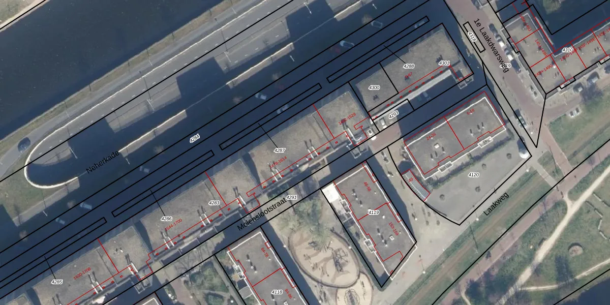 Het perceel waarop Neherkade 1486 staat heeft een oppervlakte van 2685 m². Dit is een zeer groot perceel. De perceeloppervlakte wordt geregistreerd door het Kadaster. Gedetailleerde informatie over de maten van dit perceel kunt u vinden in het rapport Kadastrale kaart met maatvoering van Neherkade 1486.