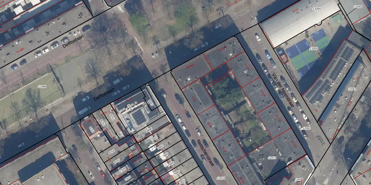 Het perceel waarop Netscherstraat 12 staat heeft een oppervlakte van 3189 m². Dit is een zeer groot perceel. De perceeloppervlakte wordt geregistreerd door het Kadaster. Gedetailleerde informatie over de maten van dit perceel kunt u vinden in het rapport Kadastrale kaart met maatvoering van Netscherstraat 12.