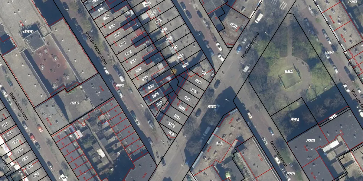 Het perceel waarop het adres ligt is GVH08-L-7245. De afkorting 'GVH08' staat voor kadastrale gemeente 's-Gravenhage. Het perceel is kleiner dan gemiddeld in 's-Gravenhage. Het perceel is 104 m² groot, terwijl het gemiddelde ligt op 468,2 m². Het grootste perceel in de kadastrale gemeente is 3,8 ha. Het kleinste perceel heeft een oppervlakte van 0 m². Op het perceel zijn 4 adressen aanwezig. De huidige grenzen van het perceel zijn digitaal in de Basisregistratie Kadaster (BRK) geregistreerd op 18-09-2003.