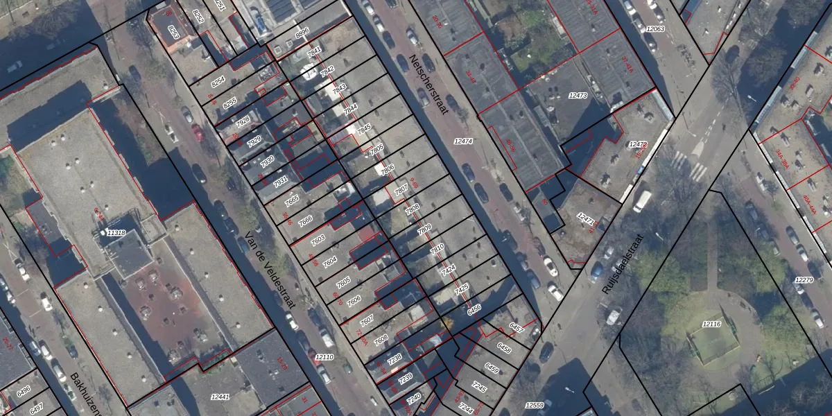 Het perceel waarop Netscherstraat 61 staat heeft een oppervlakte van 119 m². Dit is een middelgroot perceel. De perceeloppervlakte wordt geregistreerd door het Kadaster. Gedetailleerde informatie over de maten van dit perceel kunt u vinden in het rapport Kadastrale kaart met maatvoering van Netscherstraat 61.