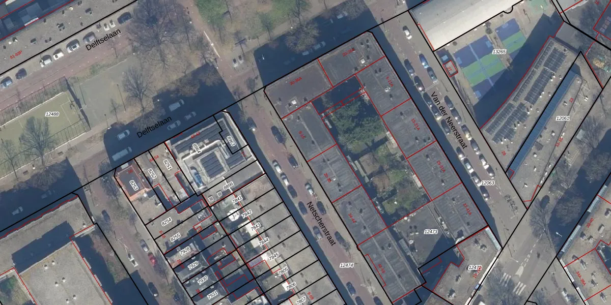 Het perceel waarop Netscherstraat 8 staat heeft een oppervlakte van 3189 m². Dit is een zeer groot perceel. De perceeloppervlakte wordt geregistreerd door het Kadaster. Gedetailleerde informatie over de maten van dit perceel kunt u vinden in het rapport Kadastrale kaart met maatvoering van Netscherstraat 8.
