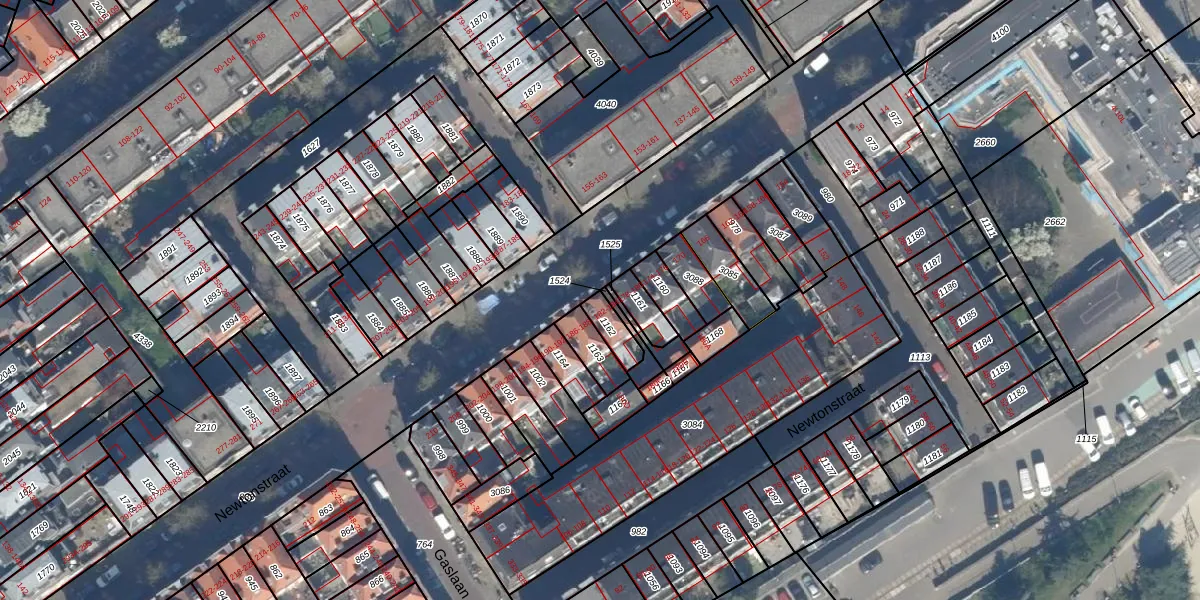 Het perceel waarop Newtonstraat 184 staat heeft een oppervlakte van 60 m². Dit is een klein perceel. De perceeloppervlakte wordt geregistreerd door het Kadaster. Gedetailleerde informatie over de maten van dit perceel kunt u vinden in het rapport Kadastrale kaart met maatvoering van Newtonstraat 184.