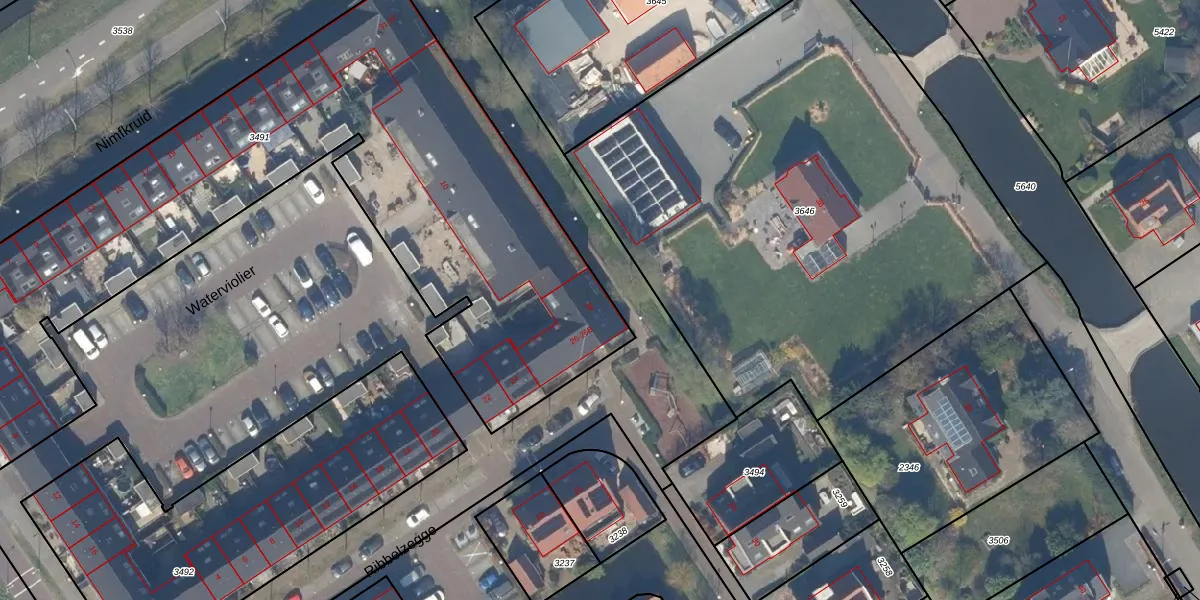 Het perceel waarop Nimfkruid 39 staat heeft een oppervlakte van 3494 m². Dit is een zeer groot perceel. De perceeloppervlakte wordt geregistreerd door het Kadaster. Gedetailleerde informatie over de maten van dit perceel kunt u vinden in het rapport Kadastrale kaart met maatvoering van Nimfkruid 39.