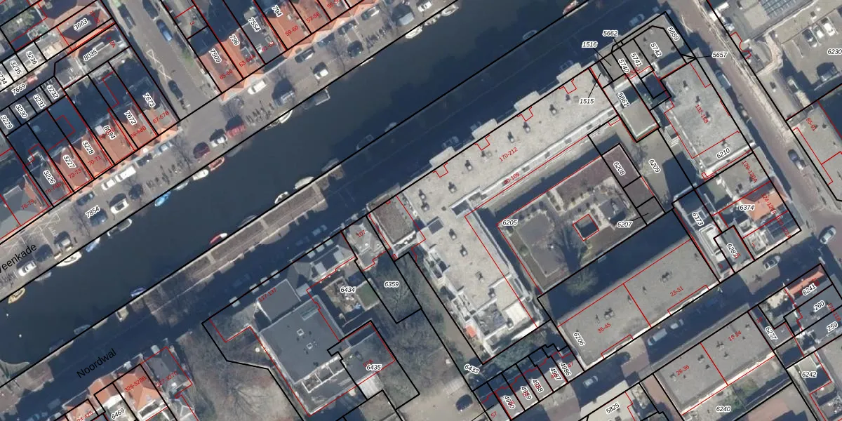 Het perceel waarop Noordwal 70 staat heeft een oppervlakte van 2259 m². Dit is een zeer groot perceel. De perceeloppervlakte wordt geregistreerd door het Kadaster. Gedetailleerde informatie over de maten van dit perceel kunt u vinden in het rapport Kadastrale kaart met maatvoering van Noordwal 70.