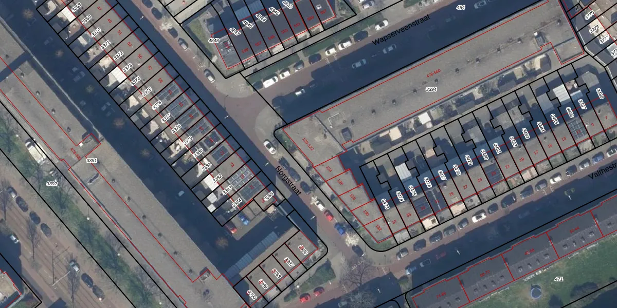Norgstraat 122 is gelegen op kadastraal perceel GVH37AW3394. Deze kadastrale aanduiding is uniek en wordt gebruikt door het Kadaster om eigendomsrechten en andere zakelijke rechten vast te leggen. Het perceel maakt onderdeel uit van de kadastrale gemeente 's-Gravenhage.